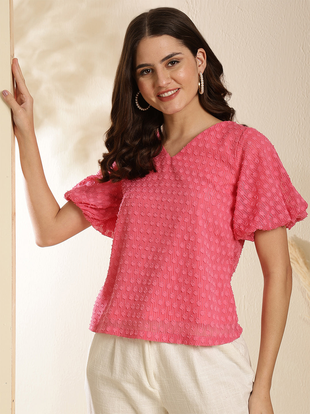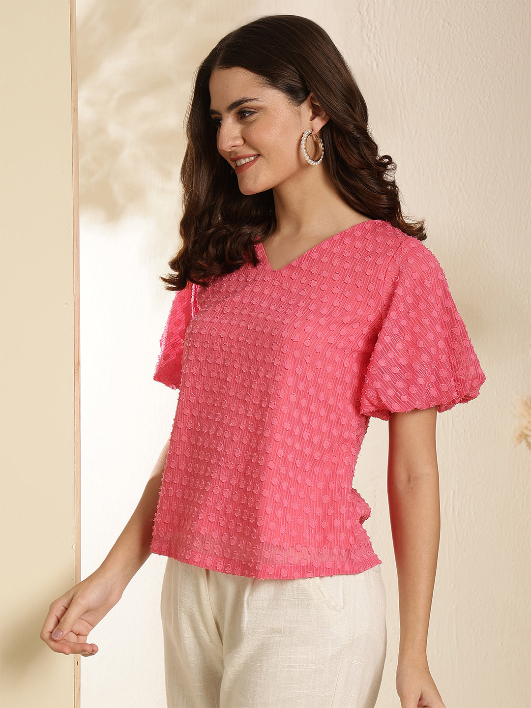 Add a refreshing charm to your everyday wardrobe with Akimia’s Polka Dot Balloon Sleeves Regular Top, designed to blend effortless style with all-day comfort. Crafted from lightweight georgette fabric, this top offers a soft, flowy feel that drapes beautifully, making it an ideal choice for warm-weather dressing.