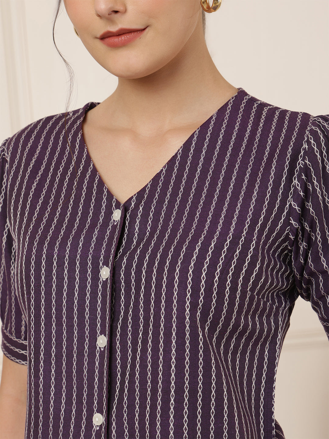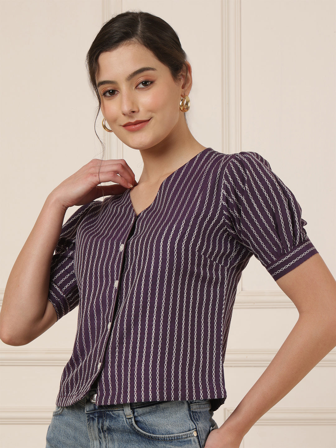 The Striped Puff Sleeves Shirt Style Top from Akimia is designed for women who appreciate effortless style combined with everyday comfort. Crafted from a soft cotton blend fabric, this top feels lightweight and breathable, making it a perfect choice for warm weather and all-day wear. The classic stripe pattern adds a timeless appeal, while the shirt-style silhouette gives it a structured yet relaxed look that transitions easily from casual outings to office wear.
