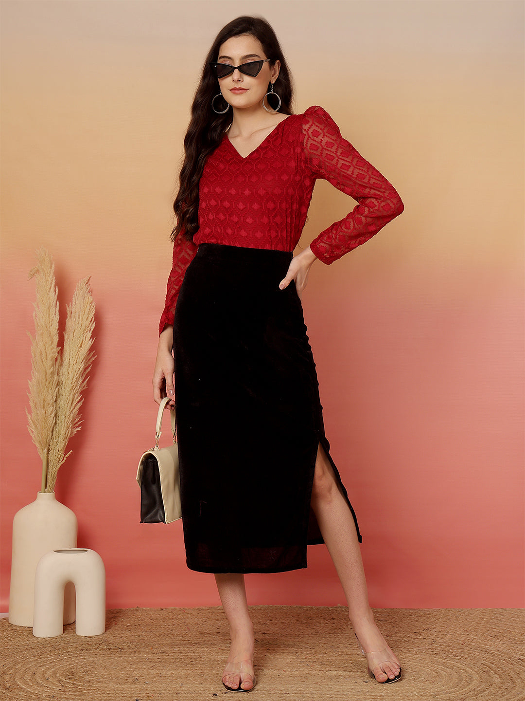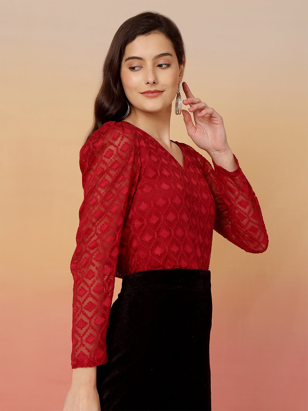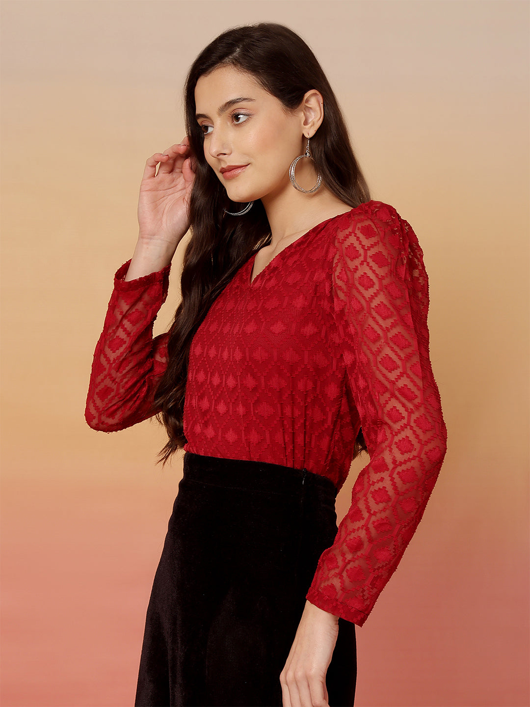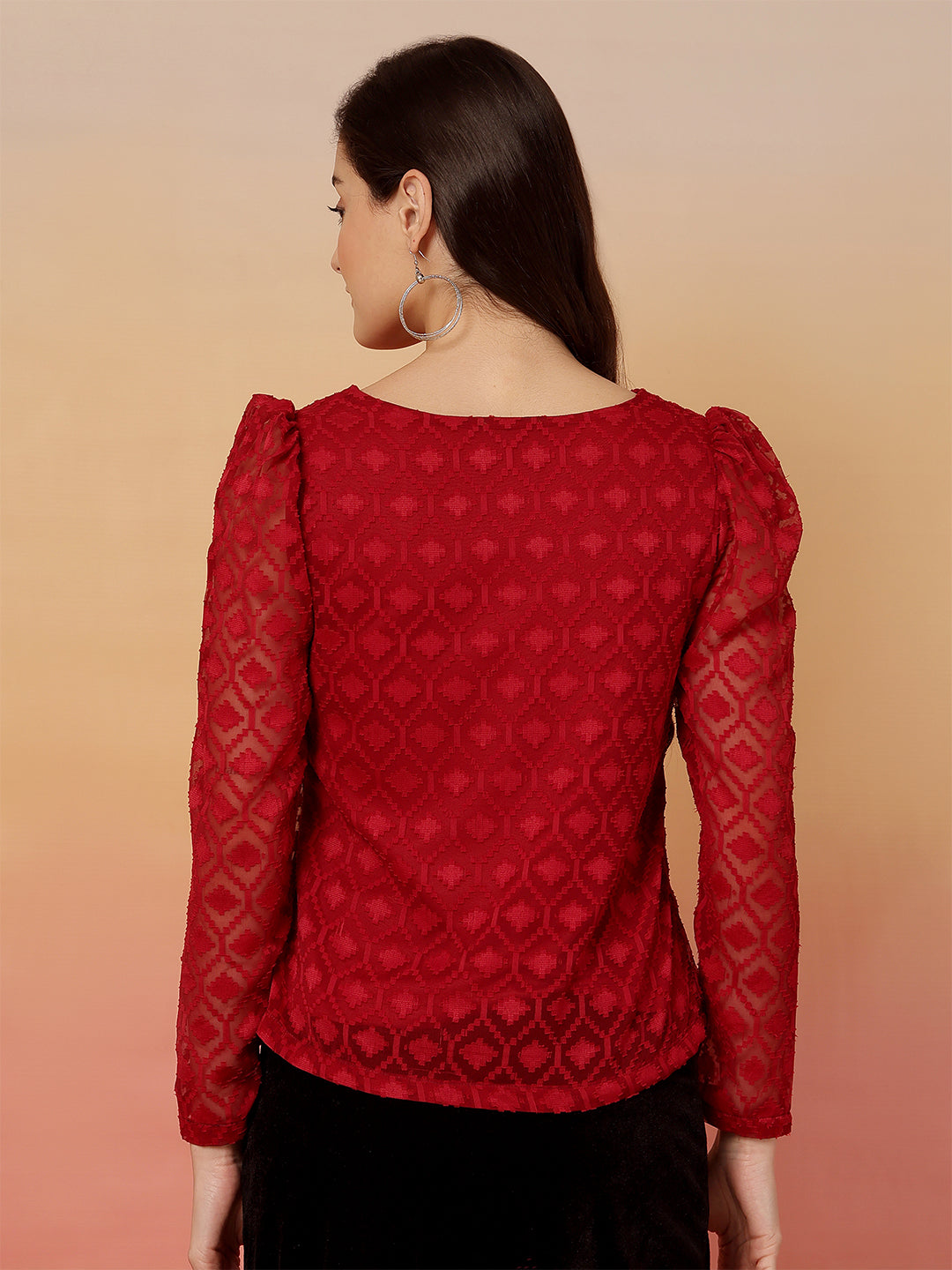 The attached lining ensures a smooth and comfortable fit, offering added coverage without compromising breathability. Finished in a rich maroon shade, this versatile top pairs easily with jeans, trousers, skirts, or tailored pants, allowing you to create multiple looks with a single piece. Whether you're heading to the office, meeting friends for brunch, traveling, or styling for summer outings, this top adapts effortlessly to your lifestyle.